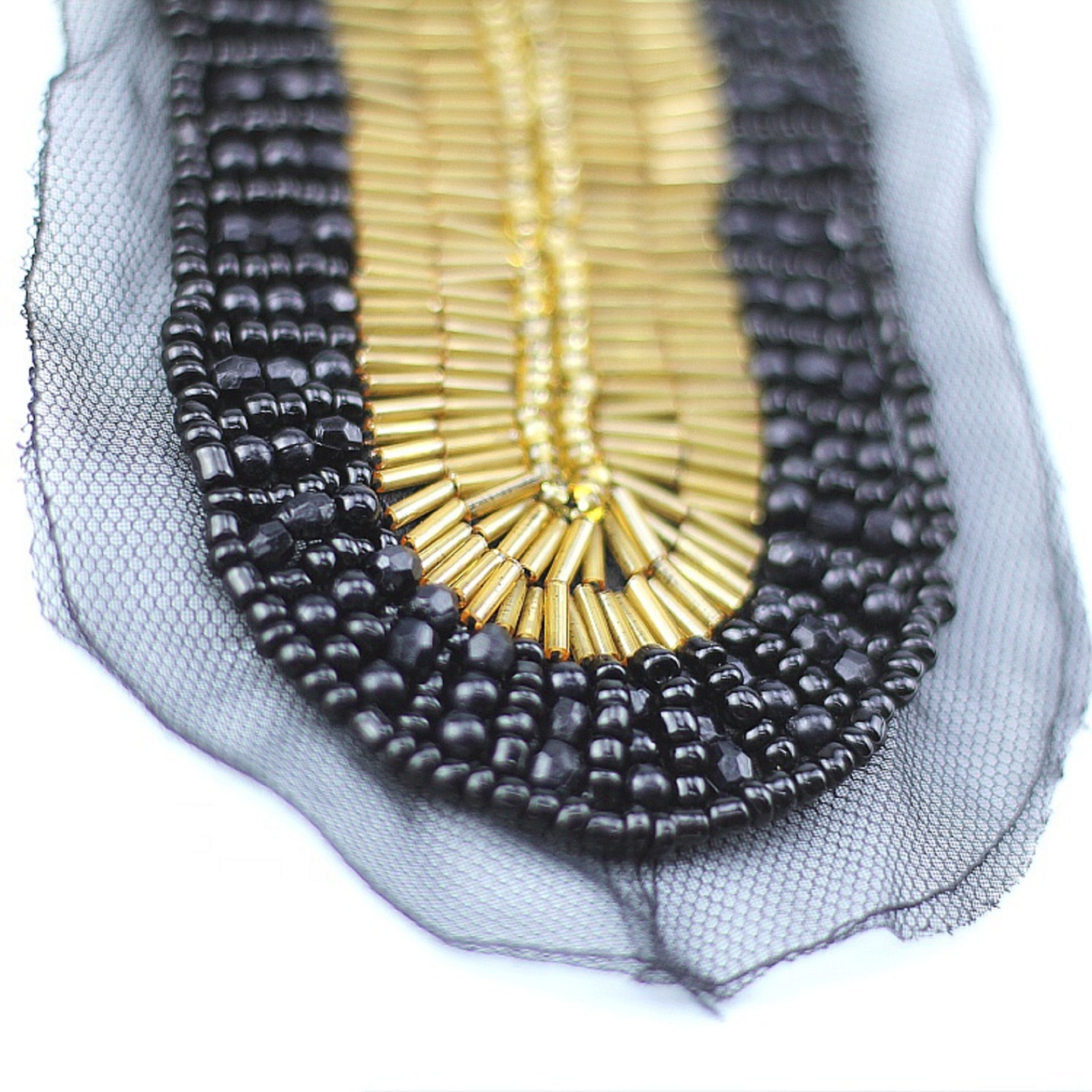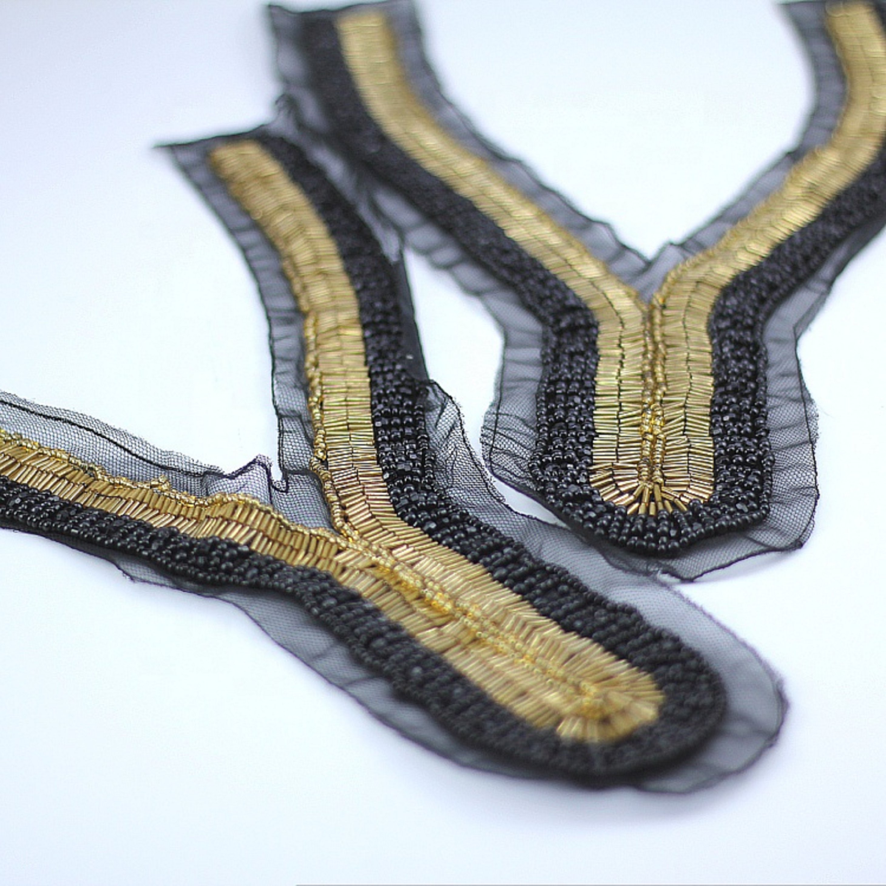 Stock Cheap Gold Beaded Appliques Handmade Patch And Trimmings For Stone Work Neck Design